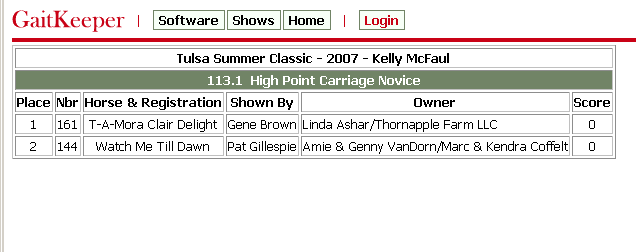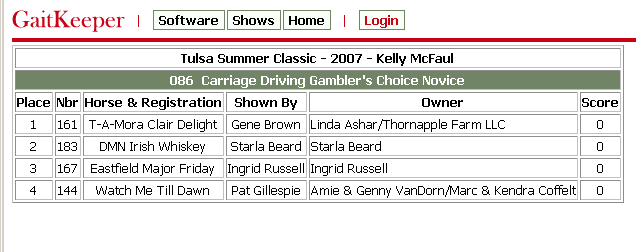 Gene Brown, whip. My pretty pretty girl. This is T-A-Mora Clair Delight (Hi-Fi Eben Moro x Aquila's Total Devotion) in her ribbons and roses at Tulsa Classic, Champion in Carriage Division Novice. Clair is 4 years old and this was her first appearance in harness. She is our very first Morgan baby of our breeding after the Morgan bug bit us 6 years ago, so she is very special to us for many reasons. |